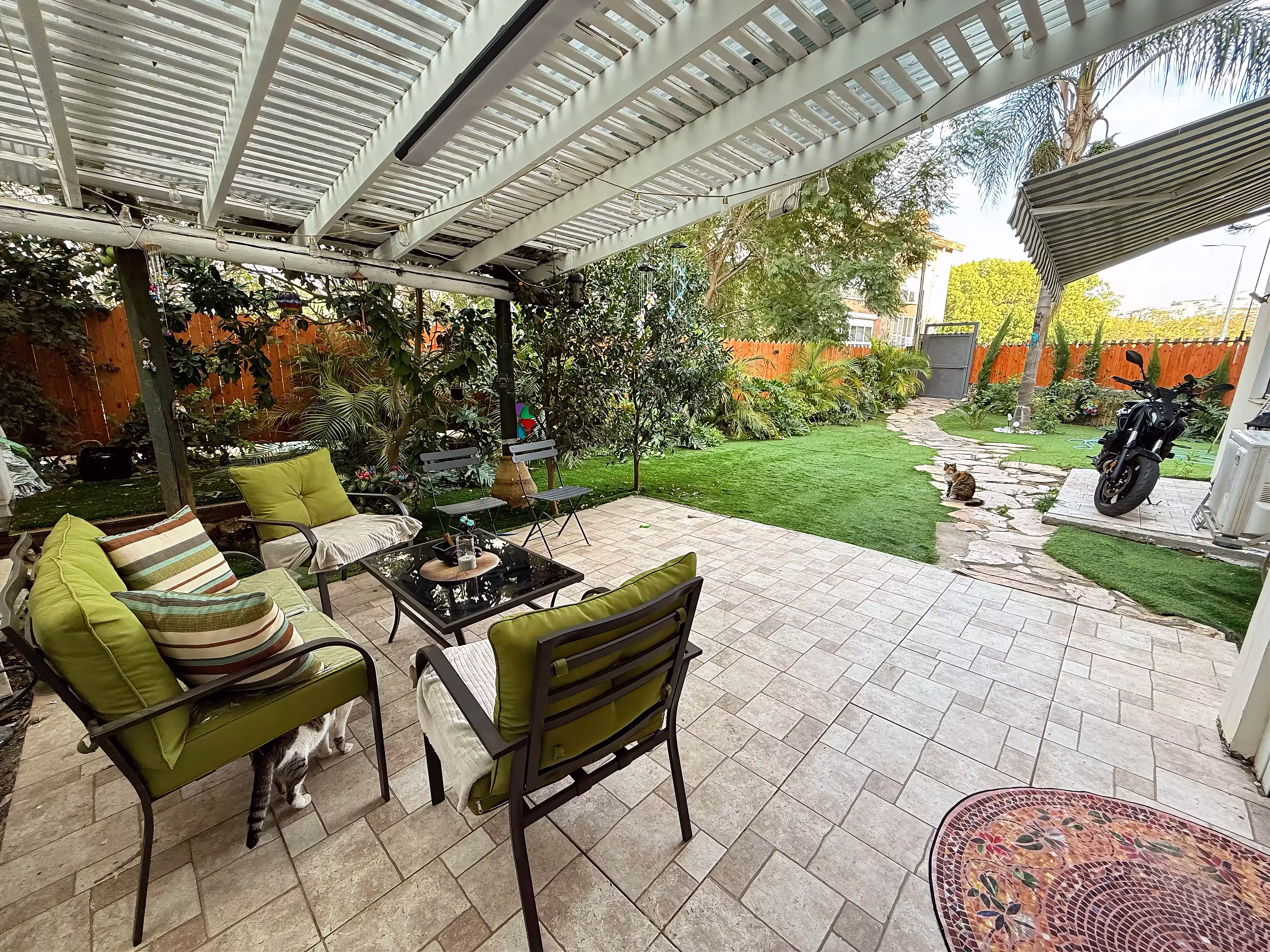 גולת הכותרת – גינה פרטית עצומה של כ־180 מ"ר, מעוצבת ומטופחת: שבילי אבן טבעיים, דשא איכותי, אזור ישיבה מוצל ונעים לאורך כל היום, ועצי נוי וצמחייה בוגרת היוצרים פרטיות ואווירה ירוקה מושלמת. המרחב בחצר אידיאלי לאירוח, למשפחות ולכל מי שאוהב ליהנות משטח פתוח ומרווח.